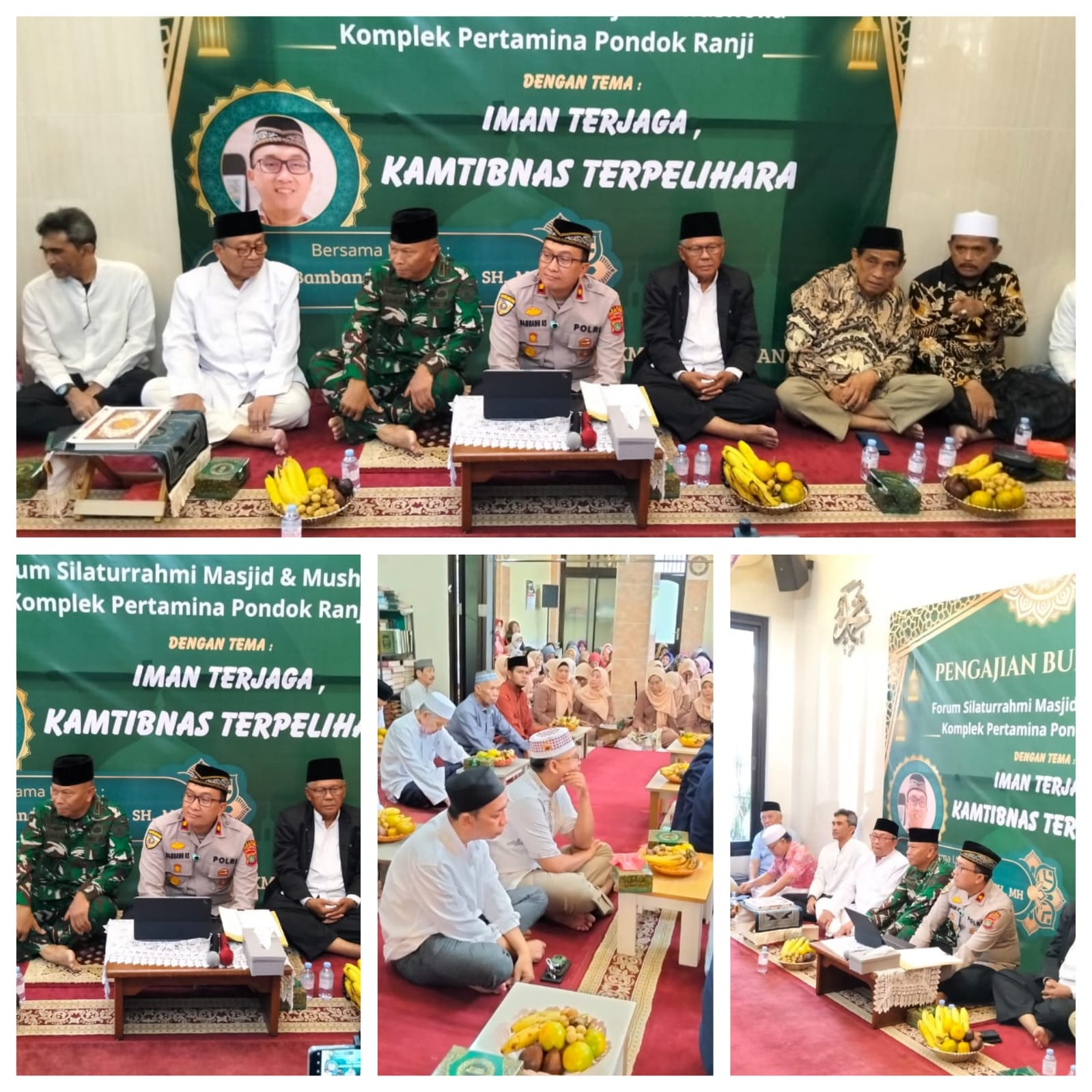 Kegiatan yang rutin digelar setiap bulan ini turut dihadiri oleh berbagai unsur masyarakat dan aparatur wilayah, antara lain Danramil Ciputat Mayor Inf Tarzan, Ketua Forum Masjid dan Musholla KH Ajat Sudrajat, Sekretaris Kelurahan Pondok Ranji Asmin A.Md, Bhabinkamtibmas Aiptu Andy Susilo, Babinsa Sertu Aceng, para Ketua RT dan RW, DKM, tokoh agama, tokoh masyarakat, perwakilan majelis taklim, anggota POKDAR Kamtibmas 211, serta jamaah masjid dan musholla di lingkungan Komplek Pertamina.