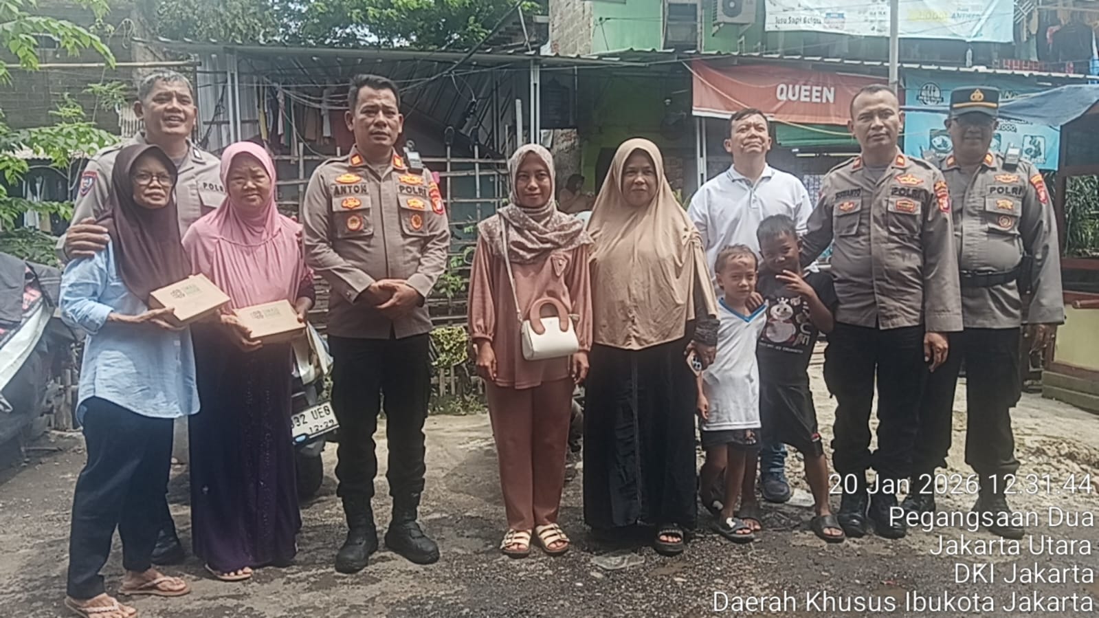 Polsek Kelapa Gading melaksanakan kegiatan Jaga Jakarta+ (Jaga Warga) sebagai wujud kepedulian Polri terhadap masyarakat terdampak banjir dengan menyalurkan bantuan makanan dan air mineral kepada warga di RW 03, Kelurahan Pegangsaan Dua, Kecamatan Kelapa Gading, Jakarta Utara, Selasa (20/1/2026).