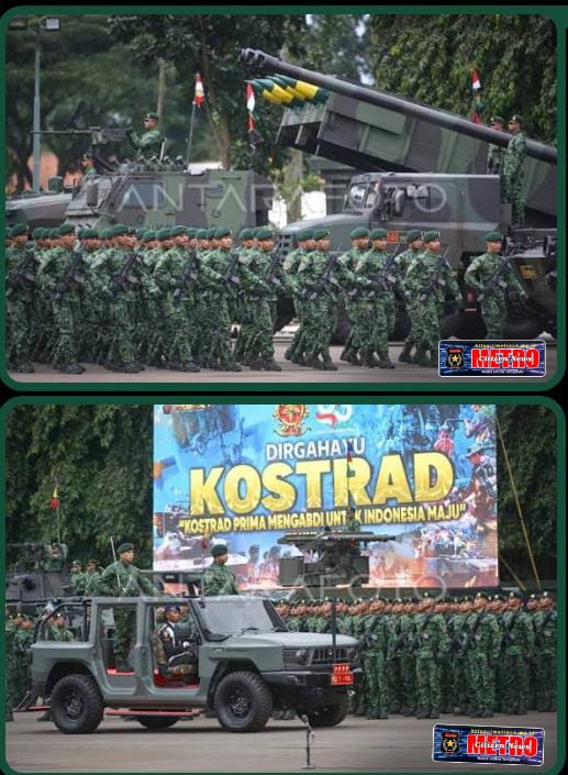Rangkaian acara perayaan HUT Kostrad Ke-65 dilanjutkan dengan defile pasukan Kostrad yang sangat megah. Sebanyak 1.500 prajurit dari lima Satuan Tingkat Batalyon (STY) turut serta dalam parade ini. Mereka berbaris rapi, penuh semangat, dan menunjukkan kekompakan di lapangan utama, menciptakan pemandangan yang impresif.