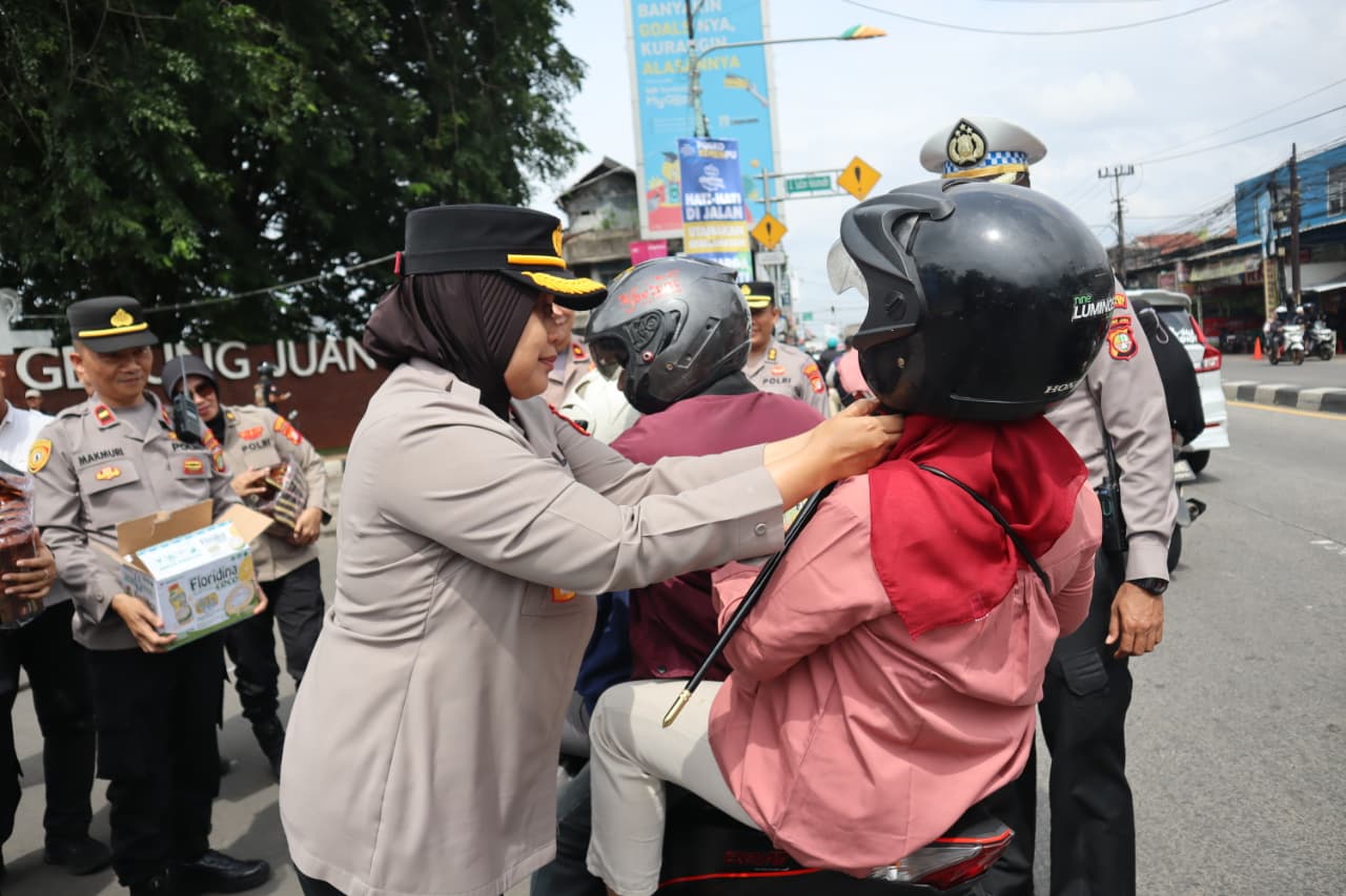 Kegiatan yang berlangsung di Jalan Raya Sultan Hasanudin, Desa Mekarsari, Kecamatan Tambun Selatan ini turut didampingi oleh Plt Wakapolres Metro Bekasi AKBP Alin Kuncoro serta para pejabat utama (PJU) Polres Metro Bekasi.