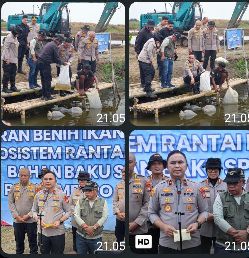 Bekasi — Wakapolda Metro Jaya Brigjen Pol. Dekananto Eko Purwono meninjau sekaligus memimpin penebaran benih ikan tahap kedua di tambak Muara Gembong, Kabupaten Bekasi, Sabtu (18/4/2026). Kegiatan ini merupakan bagian dari penguatan rantai pasok bahan baku SPPG Polda Metro Jaya.