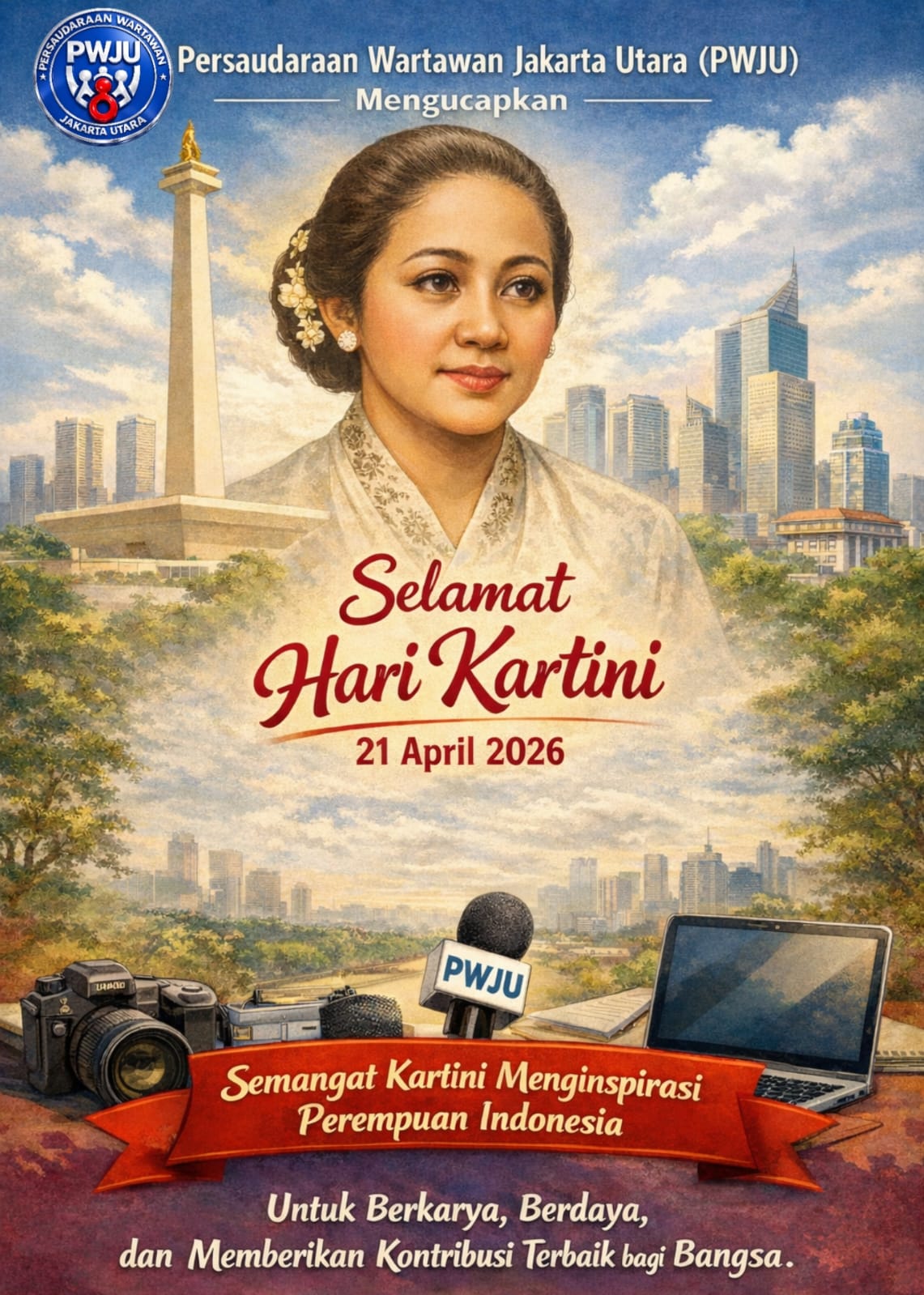 Jakarta, 21 April 2026 – Persaudaraan Wartawan Jakarta Utara (PWJU) menyampaikan ucapan selamat memperingati Hari Kartini yang jatuh pada 21 April 2026.Momentum ini mengenang atas perjuangan Raden Ajeng Kartini dalam memperjuangkan hak dan kesetaraan perempuan di Indonesia.